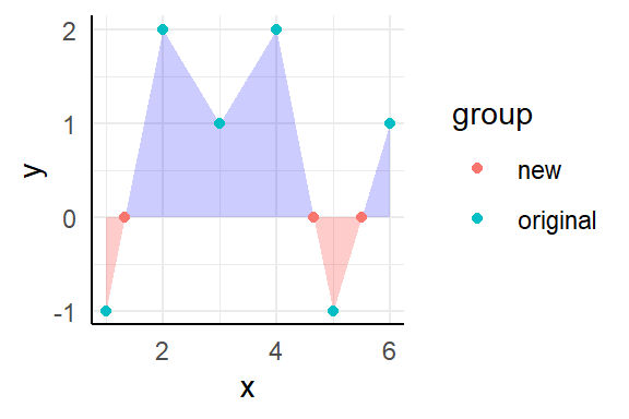 geom_area(data = . %>% filter(y >= 0), fill = "blue", alpha = 0.2) +