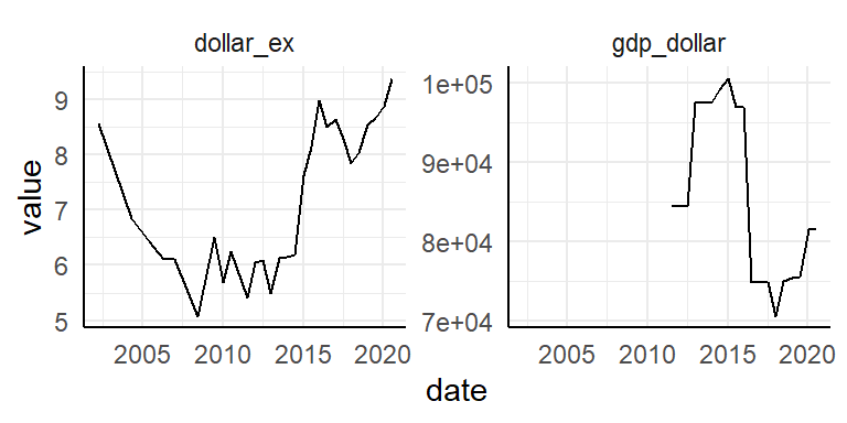 select(date, dollar_ex, gdp_dollar) %>%